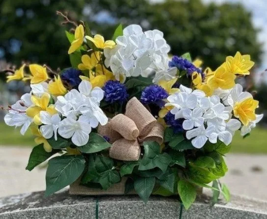 A secure and thoughtful solution, designed to hold each arrangement safely in place—while protecting the headstone it rests on.